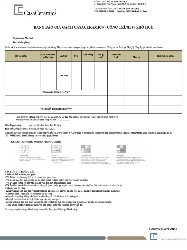 1.10.2024.Báo giá gạch CasaCeramics công trình 19 phố Huế | PDF